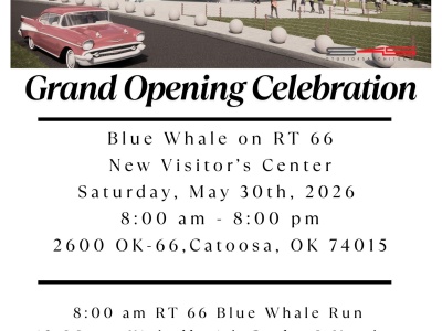 Join the Grand Opening Celebration of the Blue Whale on RT 66 New Visitor's Center in Catoosa, OK, on May 30, 2026, from 8am to 8pm with runs,...